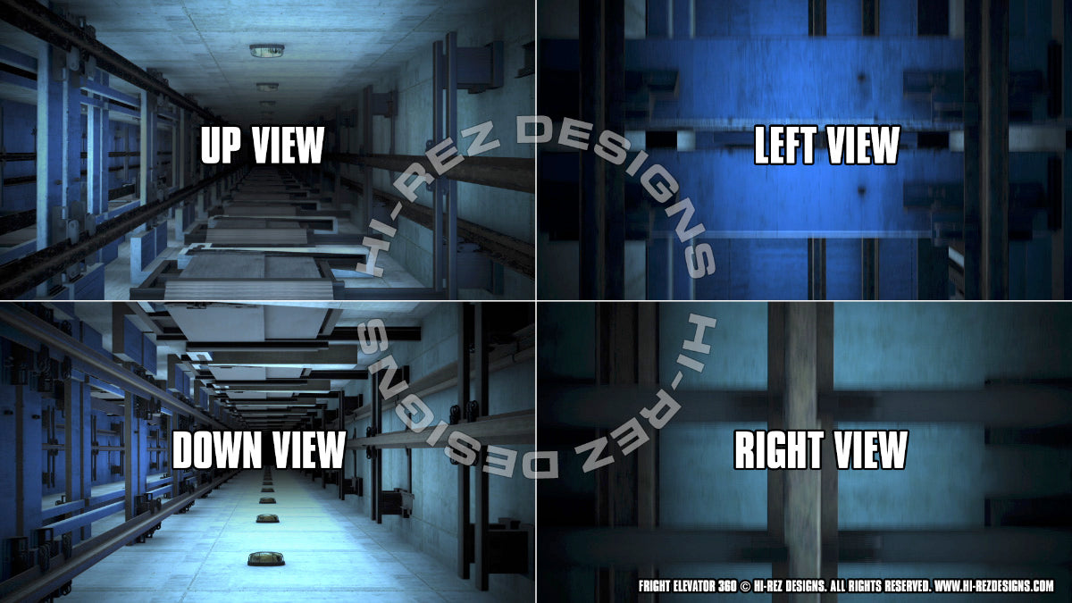 Included with this purchase are a 1 minute length version and 30 second length version of full view sets set of Fright Elevator 360 with stereo soundtrack.