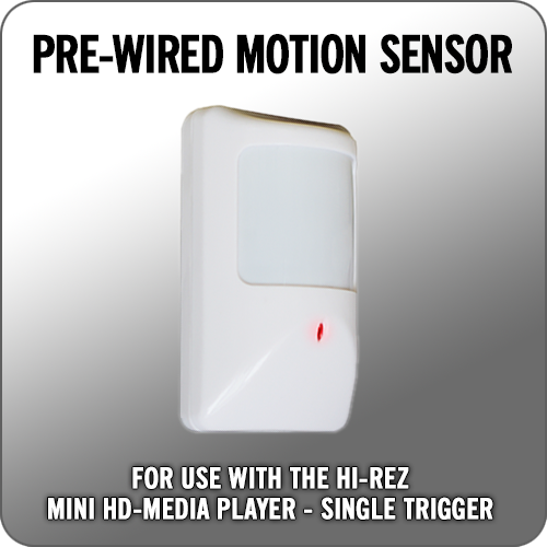 This quality motion sensor has been designed and wired to work specifically with our MINI HD-MEDIA PLAYER - SINGLE TRIGGER unit.